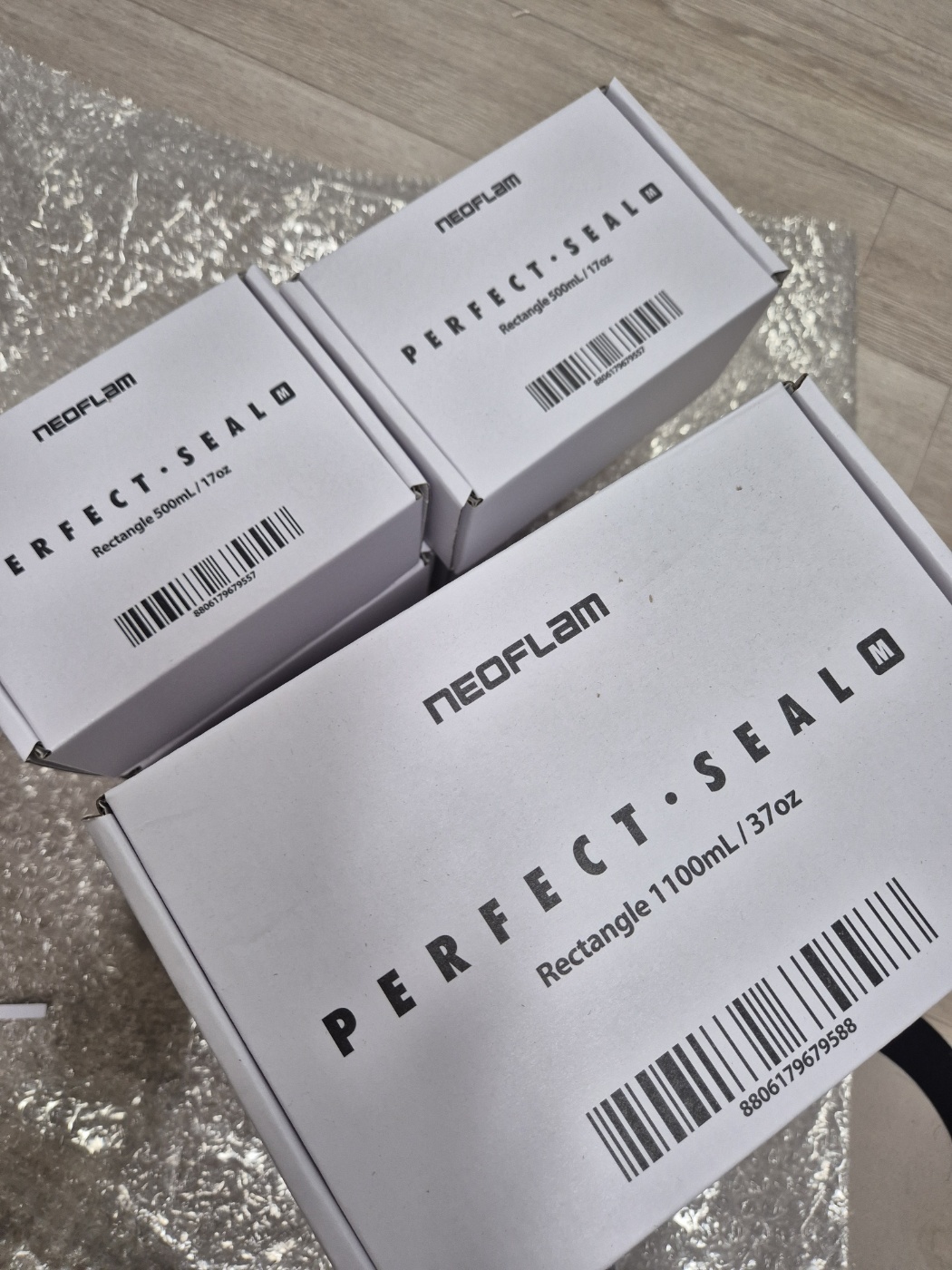 모두 직사각형 모양의 용기로 구매했어요.