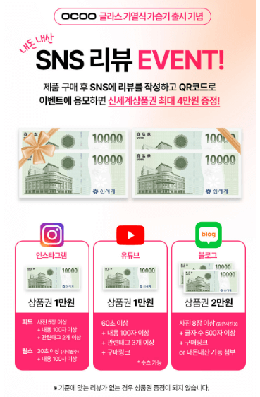 - SNS 리뷰 작성시 백화점상품권 최대 4만원 증정
