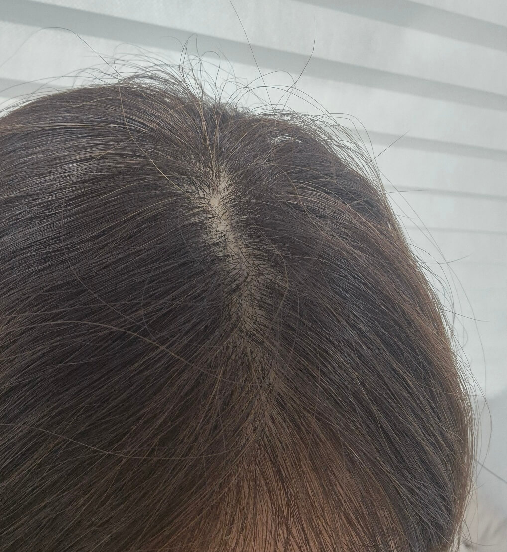 미쟝센 올뉴 쉽고 빠른 거품염색약으로 염색 후 상태입니다. 새치염색이 정말 잘 되는 것을 확인할 수 있었습니다.