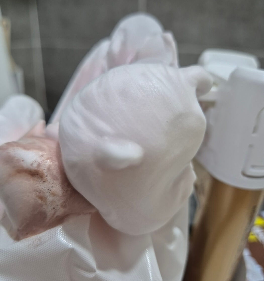 미쟝센 올뉴 쉽고 빠른 거품염색약은 거품의 텍스쳐가 정말 쫀쫀하고 탱글 합니다. 그래서 시간이 지나도 절대 머리카락에서 흘러내리지 않습니다.