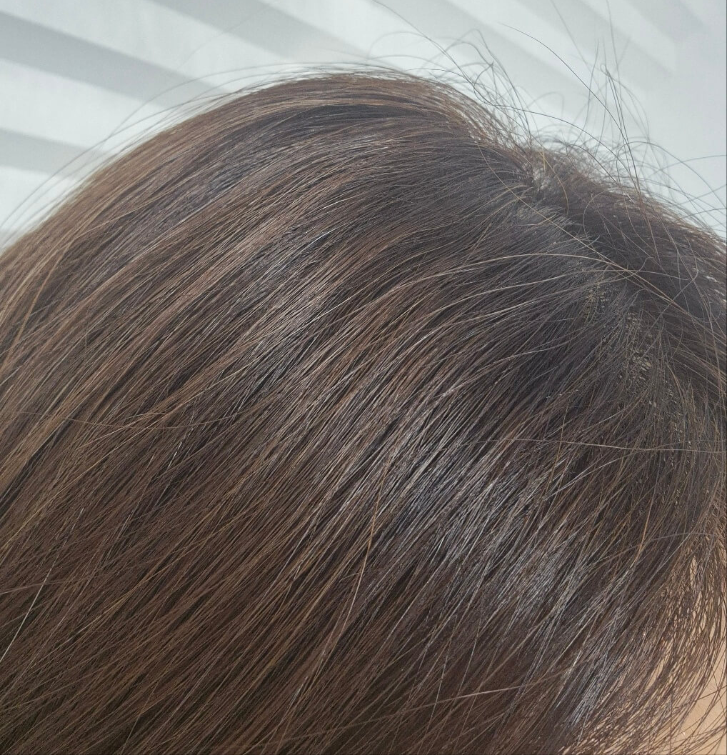 미쟝센 올뉴 쉽고 빠른 거품염색약으로 염색 후 상태입니다. 새치염색이 정말 잘 되는 것을 확인할 수 있었습니다.