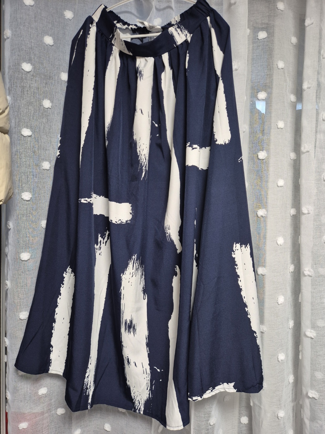 대담한 브러시 스트로크 패턴이 시선을 확 사로잡는 플레어 스커트예요.