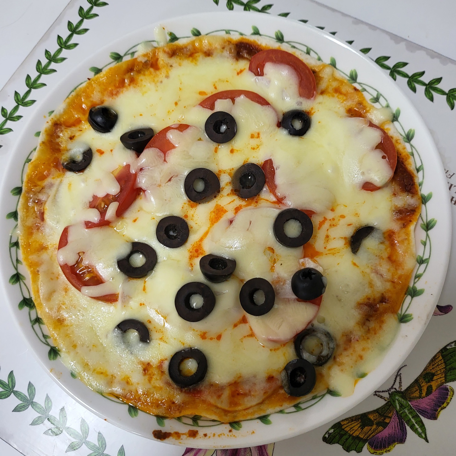 이제 올려준 토핑 위에 치즈를 충분히 뿌려 주고, 마지막으로 올리브를 올려 장식합니다.
