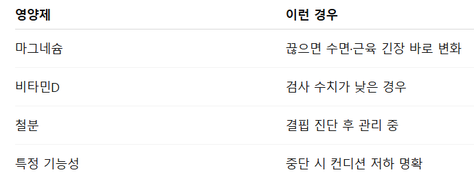 📊 끊어도 되는 vs 계속 먹어야 하는 영양제 기준표