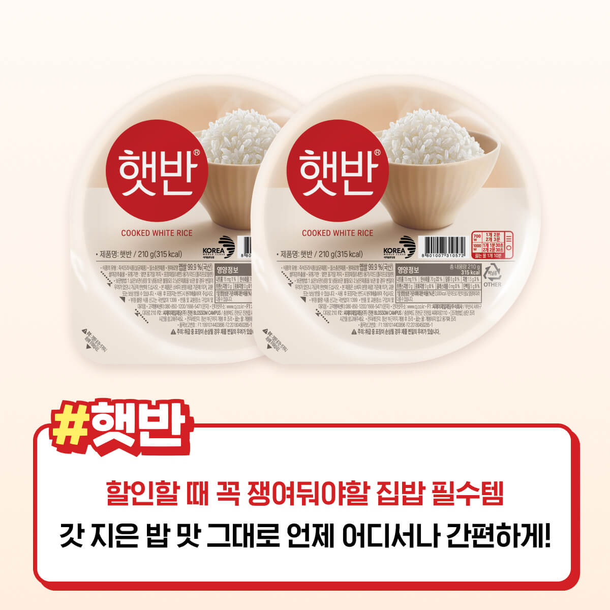 - 햇반, 스팸, 비비고 왕교자 등 할인