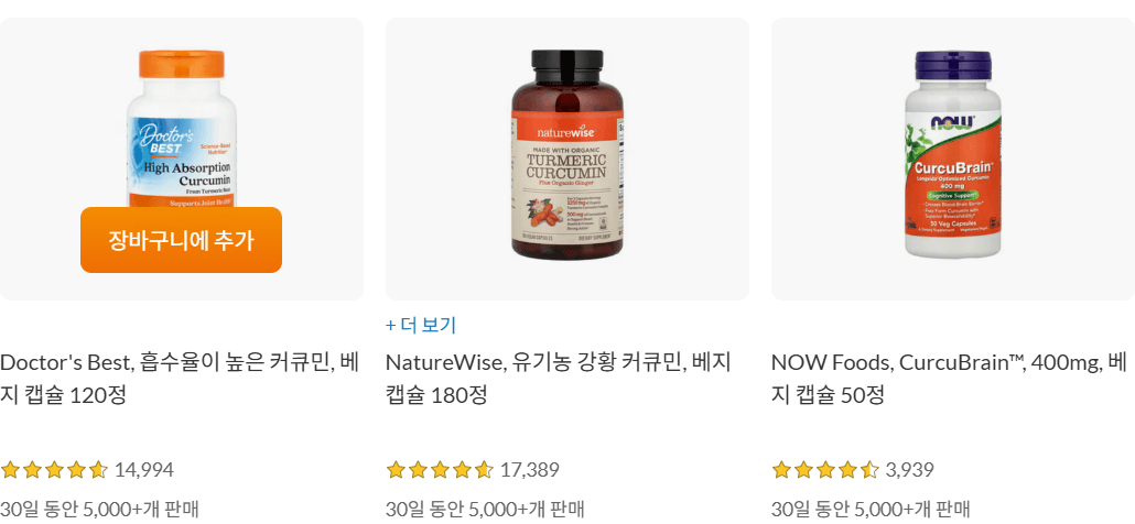 커큐민이나 레스베라트롤은 해외 브랜드의 가성비가 압도적입니다.