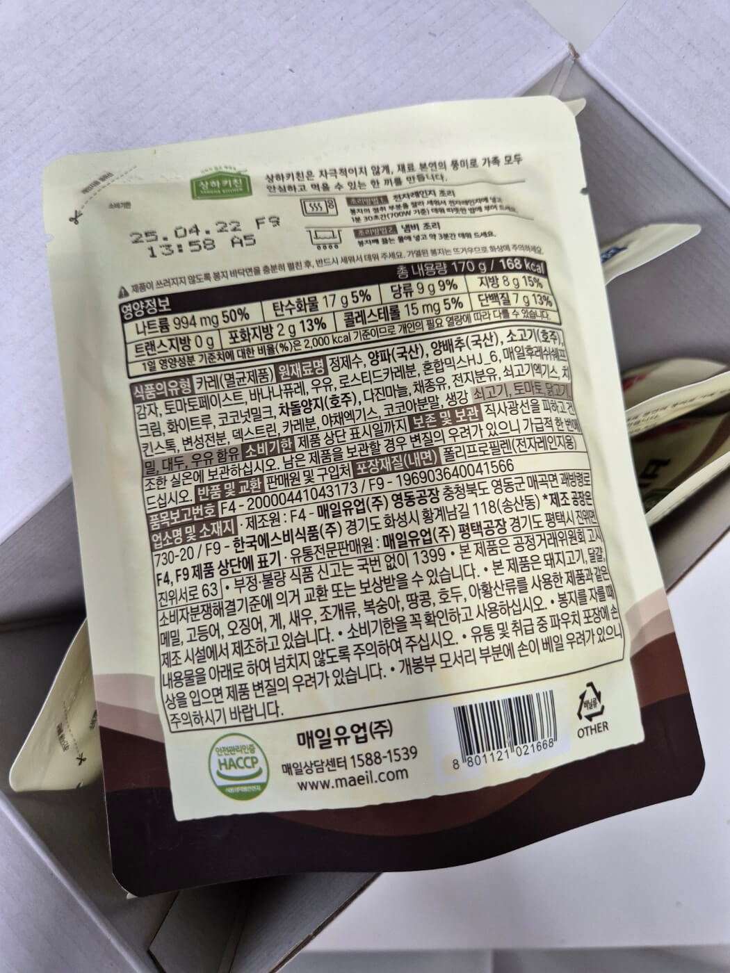 상하키친 비프카레를 간편하게 전자레인지 조리를 해 보았습니다.
