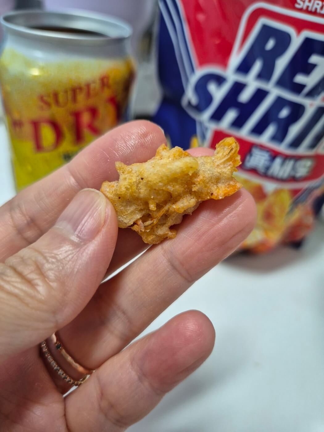 진짜 새우머리를 통째로 튀겨 만든 식품입니다.