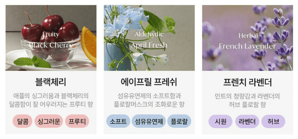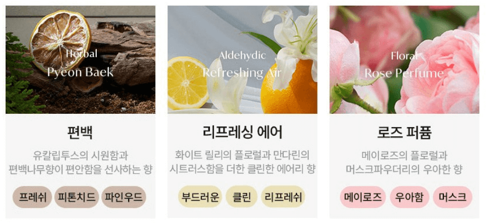 - 전문조향사가 엄선한 원료 및 검증된 기술력